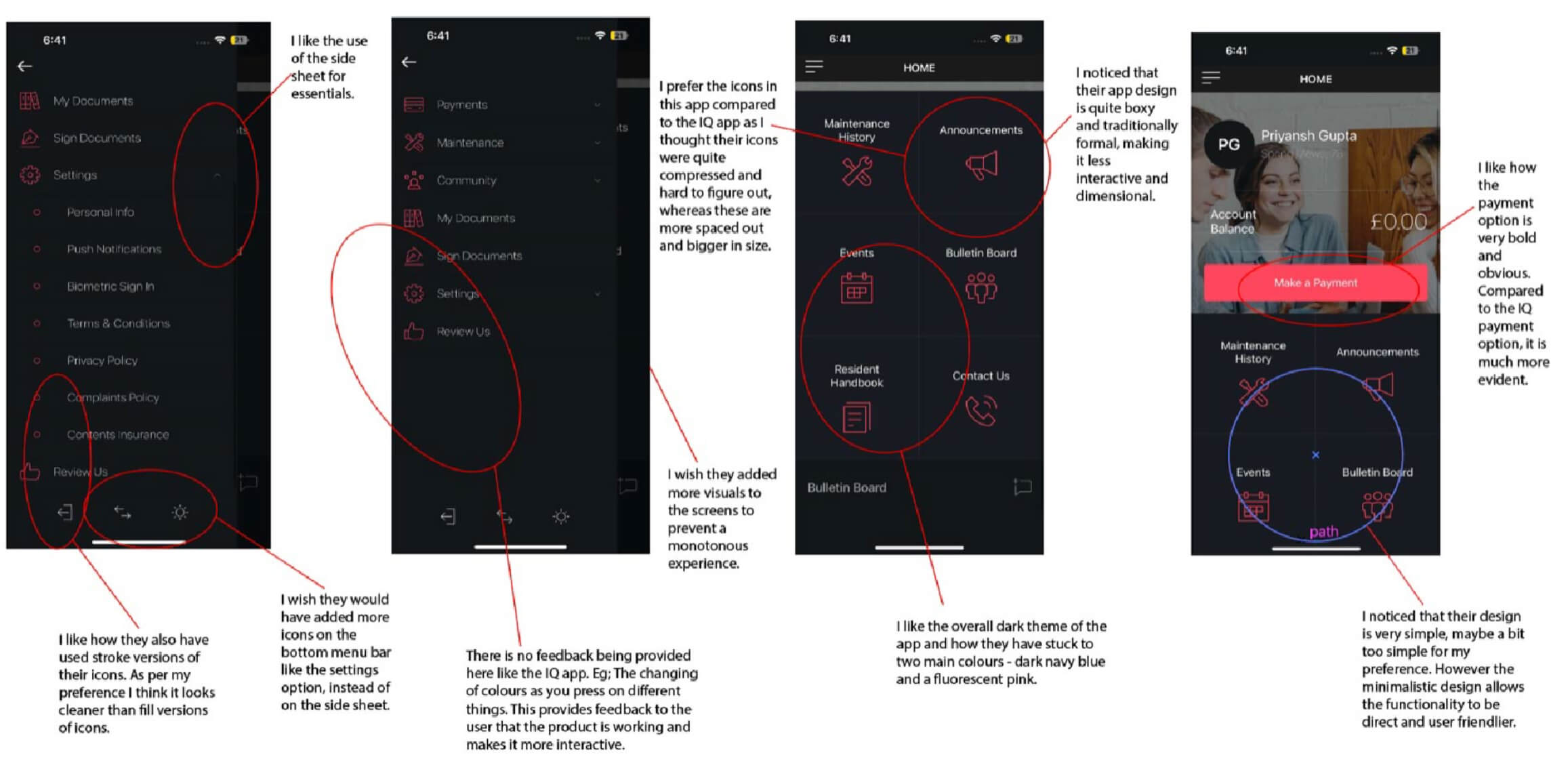 Alongside my own student accommodation app, I reviewed three existing apps in London to understand their User Interface approaches to gather inspiration and see what direction to go in for my design.