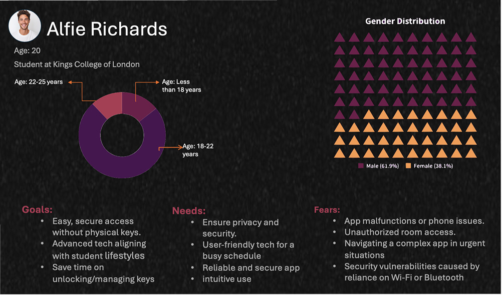 After completing my user research, I synthesised both quantitative and qualitative insights to craft a clear, data-driven user profile that reflects the needs, goals, and behaviours of my target audience.